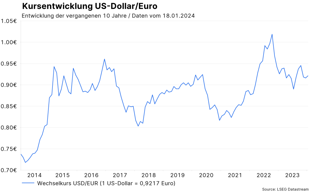 Solange eine Rezession vermieden wird, steigen im Trend die Aktienkurse an. Dazu kommt die Aussicht auf einen Schwenk von einer restriktiven zu einer neutralen Geldpolitik. Auch die Fiskalpolitik wird im Superwahljahr 2024 eher expansiv als restriktiv ausgerichtet sein. Genauso wie die Anleihen werden die Aktienkurse Anfang 2024 allerdings von den fallenden Erwartungen für frühzeitige Leitzinssenkungen und generell von einer technisch bedingten Korrektur nach den Kursanstiegen Ende 2023 belastet. Auf das Jahr betrachtet bleibt der Ausblick für Aktien aber günstig, solange die Rezessionsbefürchtungen gering bleiben.