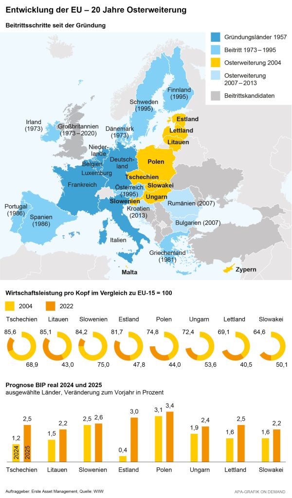 Politisch ist damals für die ehemaligen Warschauer-Pakt-Länder ein neues Zeitalter angebrochen. Auch die für die Aufnahme nötigen politischen und institutionellen Reformen waren ein Meilenstein in Richtung Europa. Wirtschaftlich war die Erweiterung rückblickend gesehen eine klare Erfolgsgeschichte, wie aktuelle Analysen der Erste Group und des Wiener Institut für Internationale Wirtschaftsvergleiche (wiiw) zeigen.