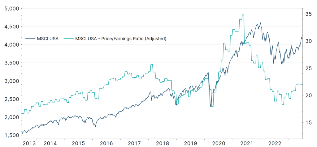 Meiner Meinung nach wäre das beste Marktszenario, wenn die Wirtschaft in eine milde Rezession abgleitet, was den Spekulationen über weitere Zinserhöhungen endgültig ein Ende setzen würde. Die US-Notenbank könnte dann mit einer koordinierten Lockerung der Politik beginnen, was die Aktienkurse stützen dürfte. In einem solchen Fall dürfte der positive Bewertungseffekt einen leichten Rückgang der Gewinnprognosen überwiegen.