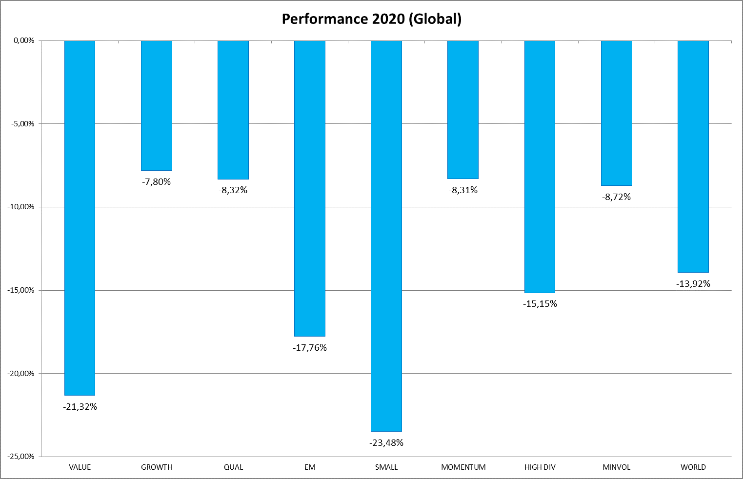 Wertentwicklung verschiedener Aktienstrategien im Vergleich (2020)