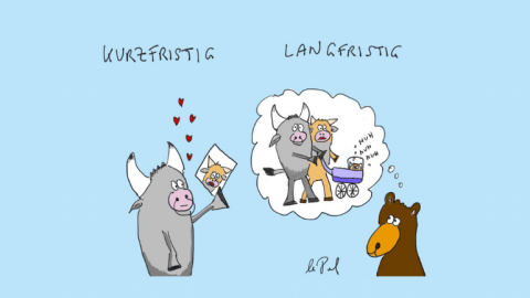 Oft unterliegen Anlegerinnen und Anleger einem Denkfehler: „Wenn die Zinsen steigen, dann steigen auch die Preise von Anleihen“. Nein, genau das Gegenteil ist der Fall! Die Wechselwirkung von Anleihenpreisen und Zinsniveau ist konträr. Wenn die Zinsen steigen, fallen die Preise der Anleihen. Und umgekehrt ebenso. Fallen die Zinsen, dann steigen die Kurse der Anleihen.