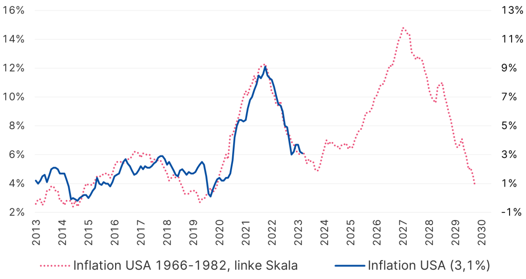 Ein „Comeback“ der Inflation, wie es ab 1977 der Fall wäre, mit einem noch stärkeren Anstieg als davor, wäre in jeder Hinsicht fatal. Hier zeigt sich der Balanceakt der Notenbanken, zwischen der nötigen Bekämpfung der Inflation und einem verfrühten Abschließen der Maßnahmen.