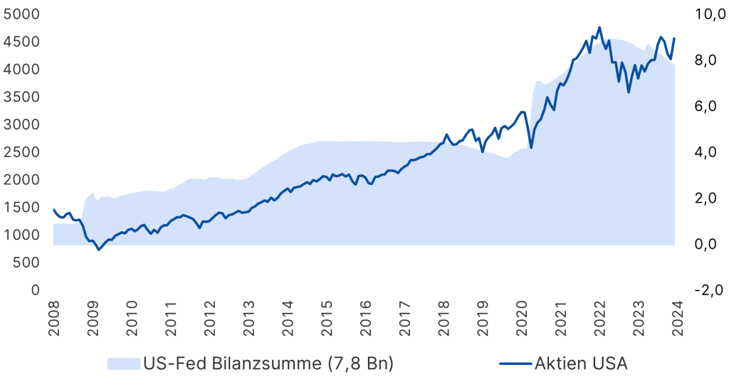 Notenbank-Bilanzsumme und Aktien-Entwicklung USA