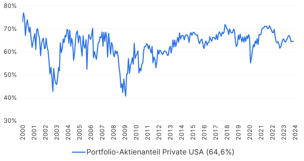 Portfolio-Anteil Aktien bei Privaten in den USA