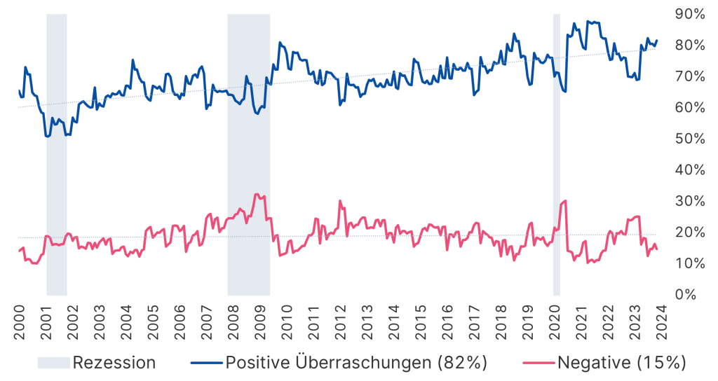 Letztlich sind positive Gewinnüberraschungen – hier bei USA-Aktien – fast ein Fixpunkt: