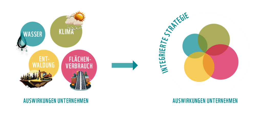 Biodiversität wird im Rahmen einer integrierten Nachhaltigkeitsstrategie innerhalb des Unternehmens verankert und wesentliche Ziele und Maßnahmen priorisiert. Alle Umweltthemen, welche Auswirkungen auf die Biodiversität haben, wie etwa Flächenverbrauch, Wasser- und Ressourcenverbrauch und Kreislaufwirtschaft werden in einer umfassenden Nachhaltigkeitsstrategie integriert.