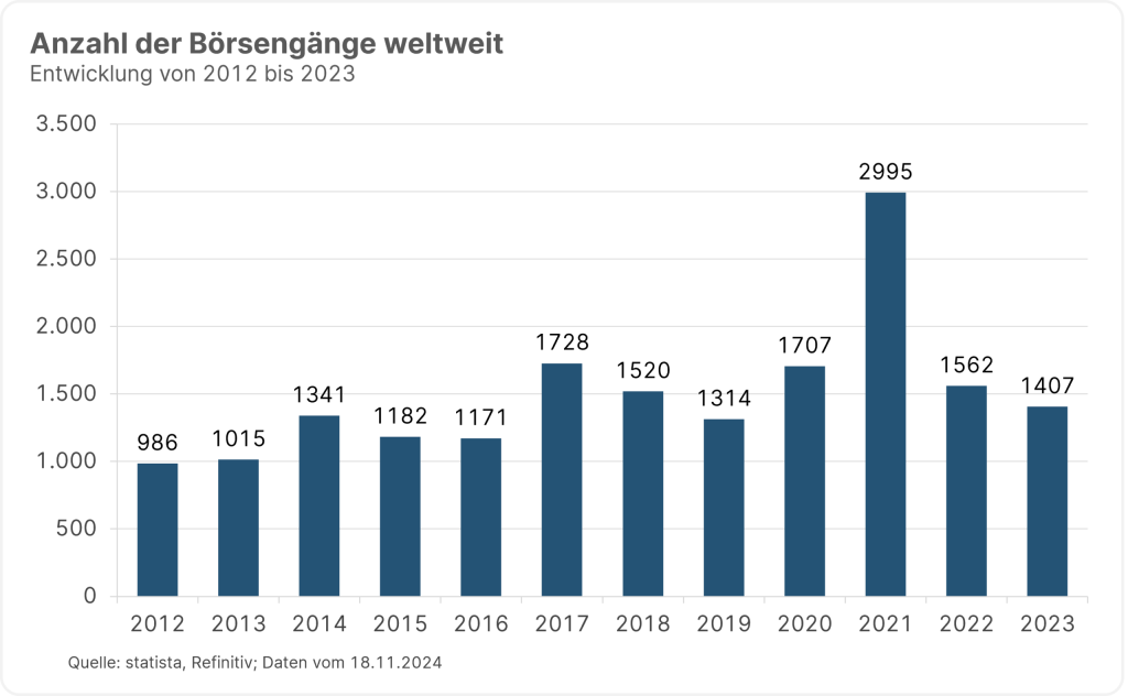 Dass es auch in die andere Richtung gehen kann, zeigte 2023 der britische Chipdesigner ARM Holdings, der sich an der New Yorker Technologiebörse Nasdaq erstmals auf das Börsenparkett wagte. In etwas mehr als einem Jahr seit dem IPO verzeichneten die Aktien von ARM ein Plus von über 120%.