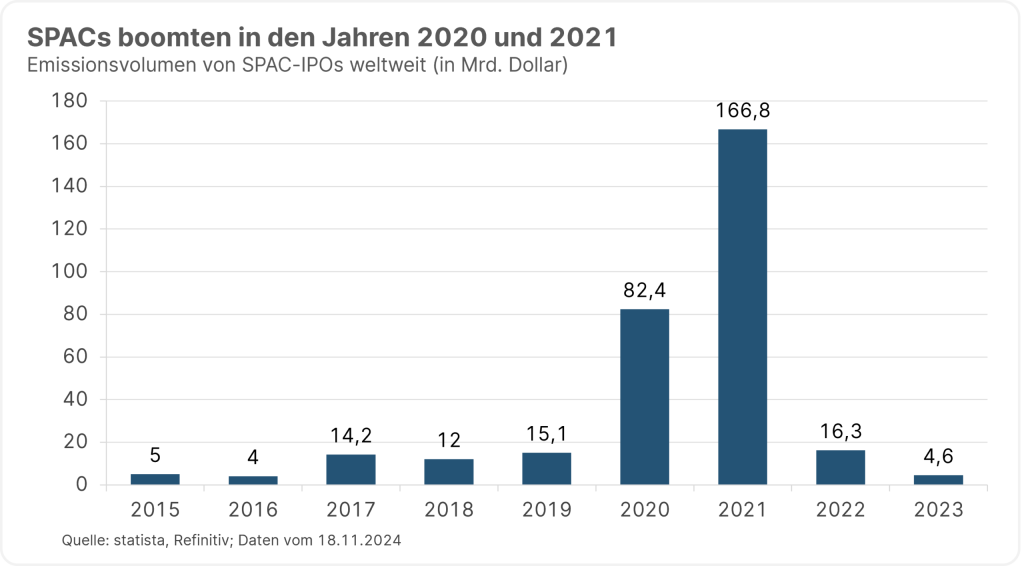 Der Vorteil liegt in einer oft schnelleren und weniger regulierten Möglichkeit an die Börse zu gehen. Anleger:innen können mit einem SPAC in Unternehmen investieren, die über einem traditionellen IPO vielleicht noch nicht den Schritt an die Börse gewagt hätten. Es gibt aber auch Risiken bei SPACs – so gibt es etwa keine Garantie, dass die Übernahme durch einen SPAC erfolgreich ist. Des Weiteren kann man nicht abschätzen wie „teuer“ oder „billig“ die Übernahme erfolgt.