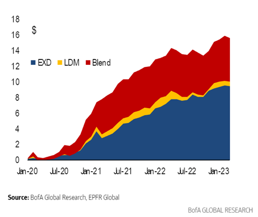 Hinweis: Die Entwicklung in der Vergangenheit ist kein zuverlässiger Indikator für künftige Wertentwicklungen. Quelle: BofA Global Research, EPFR Global