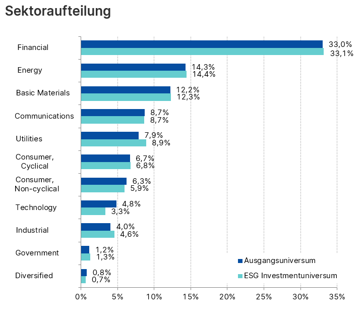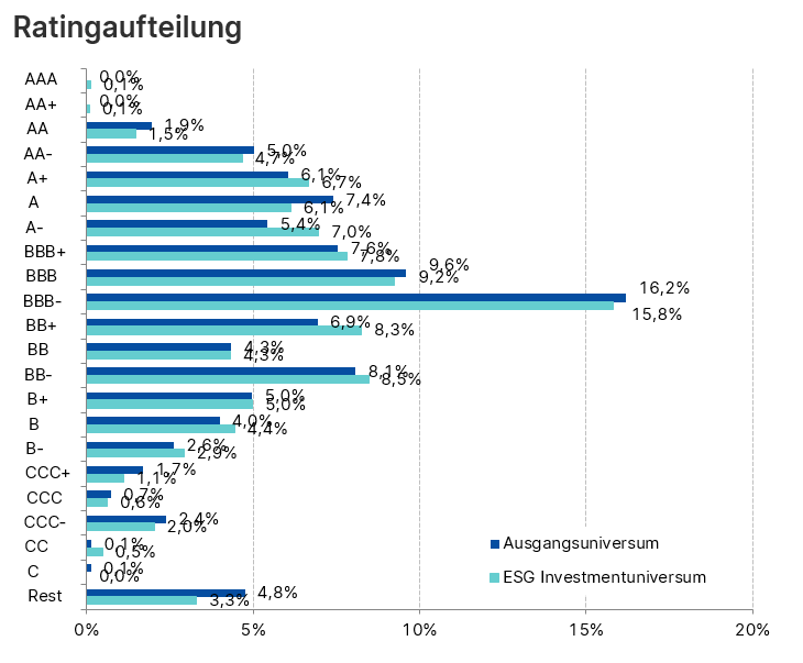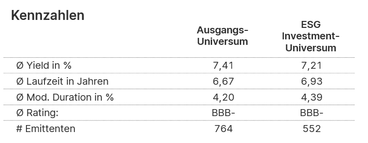 Seit Mitte Juni fließen umweltbezogene, soziale und Unternehmensführungsfaktoren in den Investment-Prozess mit ein. Durch die Umstellung des Fonds ergeben sich gewisse Veränderungen im Investment-Universum des Fonds. Hier ein Vergleich des Ausgangsuniversum mit dem neuen Universum nach ESG-Integration-Standard: