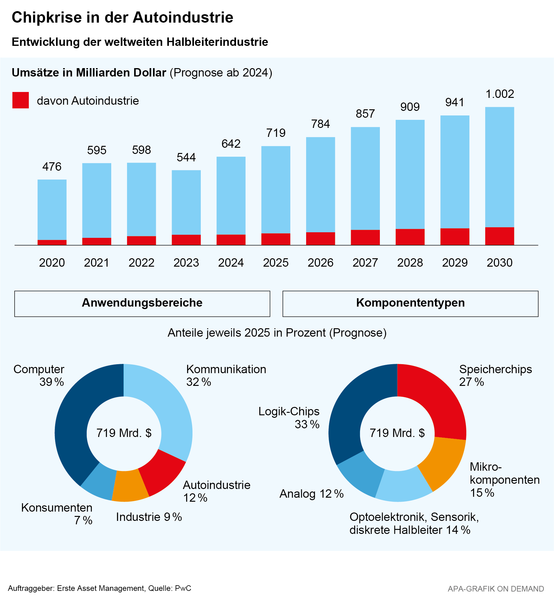 Die deutsche Autoindustrie arbeitet ebenfalls mit Hochdruck gegen den drohenden Chip-Mangel. Bei Volkswagen und Mercedes-Benz hieß es dazu, es werde nach alternativen Bezugsquellen gesucht. Gleichzeitig will Deutschlands Regierung die Chip-Abhängigkeit der Unternehmen vom Ausland reduzieren, hieß es aus dem Wirtschaftsministerium. Konkrete Details nannte eine Ministeriumssprecherin nicht. Die Regierung sei im Kontakt mit der Wirtschaft. Sie verwies auch auf die zuletzt im Kabinett gebilligte Mikroelektronik-Strategie. Diese lege den Fokus auf die Widerstandsfähigkeit von Lieferketten.