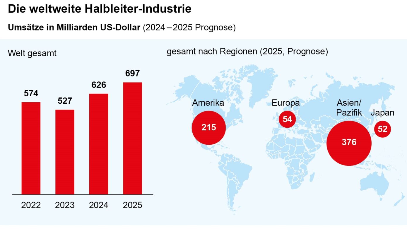 Hinweis: Die Entwicklung in der Vergangenheit sowie Prognosen sind kein zuverlässiger Indikator für künftige Wertentwicklungen. Quelle: APA/WSTS/Gartner; Daten per 7. Mai 2025 – APA Grafik on Demand, Auftraggeber: Erste Asset Management
