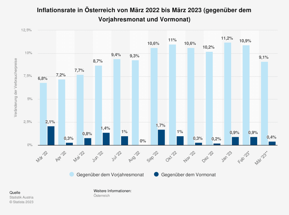 Vergleichszeitraum: 02/2022 – 02/2023, Quelle: Statistik Austria (persönlicher Inflationsrechner)