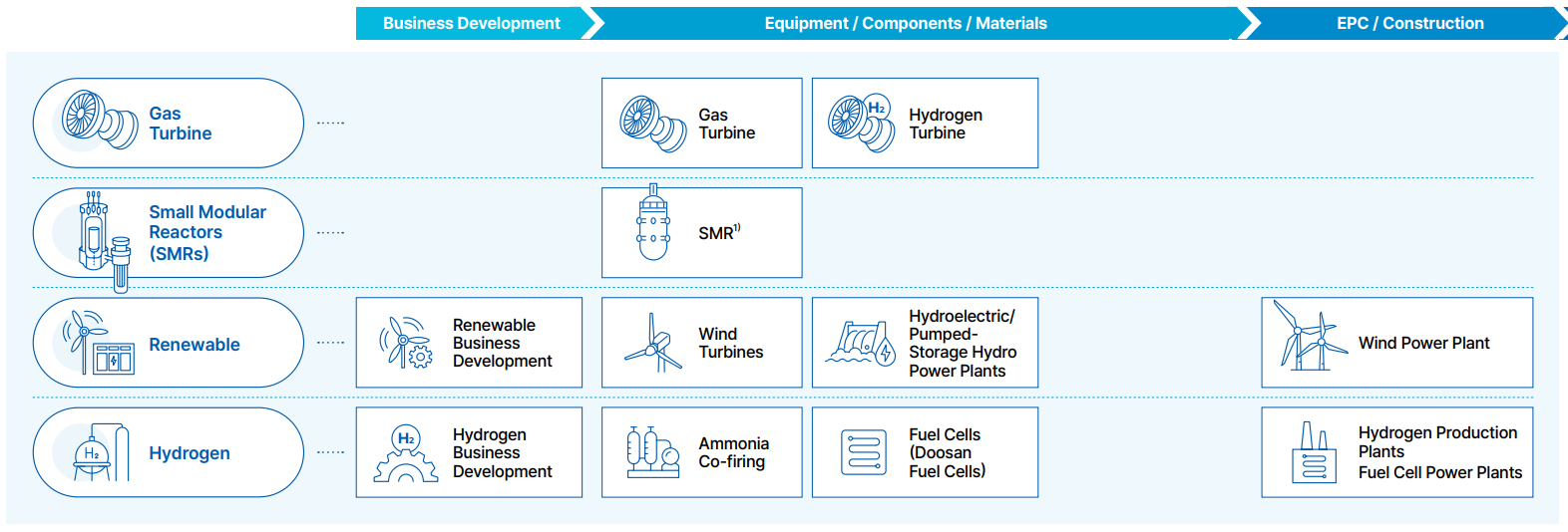 Die Wachstumsbereiche und Wertschöpfungskette von Doosan Enerbility im Überblick. Quelle: Doosan Enerbility