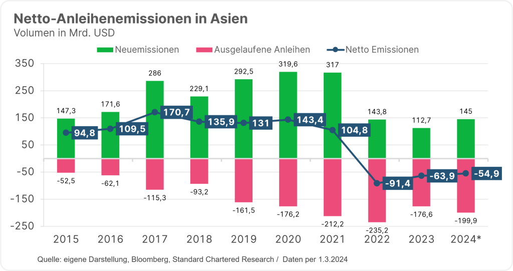 Wenn das Angebot im Vergleich zur Nachfrage knapp ist, treibt das den Preis nach oben – insbesondere, wenn die Nachfrage parallel dazu auch noch ansteigt. So ein „perfekter Sturm“ ist derzeit bei den Emerging-Markets-Unternehmensanleihen – vor allem in Asien – zu beobachten. Seit über einem Jahr werden weniger neue Unternehmensanleihen aus China ausgegeben als von Emittenten zurückgekauft werden oder auslaufen.