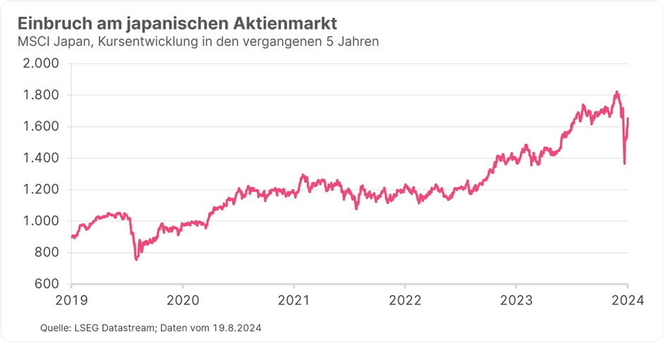 Für Japans Wirtschaft stehen die Zeichen trotz des jüngsten Börsencrashs auf Erholung. Anfang des Monats hatte die überraschende Zinserhöhung der Bank of Japan zwar kurzfristig zu kräftigen Turbulenzen an den Aktien- und Devisenmärkten geführt, mittlerweile haben sich die Märkte aber wieder stabilisiert.