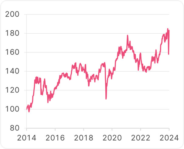 Die niedrigen Zinsen schickten auch den Kurs des japanischen Yen immer weiter nach unten. Die japanische Währung fiel heuer zeitweise auf einen Kurs von rund 160 Yen pro Dollar und damit auf ein 38-Jahrestief. Davon profitierten Japans exportorientierte Unternehmen, da ein schwacher Yen die Nachfrage nach ihren Produkten erhöht. Auch die Aktienkurse der entsprechenden Unternehmen stiegen stark, der japanische Aktienindex Nikkei kletterte allein seit Beginn 2023 um rund zwei Drittel nach oben.