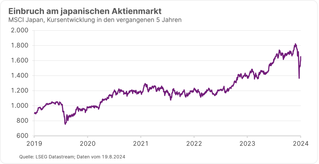 Seinen Anfang nahmen die Kursturbulenzen am Markt Anfang August in Japan. Überraschende Zinsanhebungssignale der japanischen Zentralbank sorgten für regelrechte Schockwellen im Finanzsystem. Grund dafür ist in gewisser Weise die Unterbewertung des japanischen Yen, die in den vergangenen Jahren durch die ultra-lockere Geldpolitik in Japan verstärkt wurde. Während in vielen anderen Ländern die Leitzinsen angehoben wurden, verblieben sie in Japan bis zuletzt bei 0,1%.