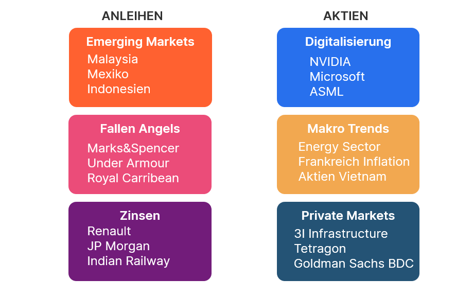 Darüber hinaus haben wir auch einige der Themen „herausgeklappt“ und Beispielinvestments angeführt, mit denen wir diese abdecken würden: