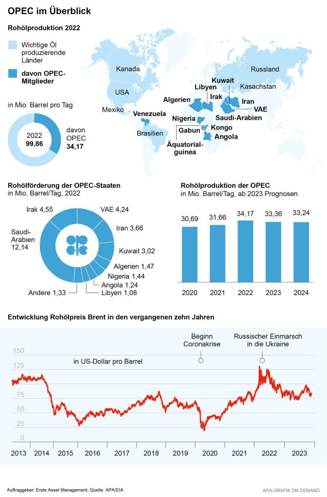 An den Rohstoffmärkten wurde die OPEC-Sitzung negativ aufgenommen. Der Preis für die Rohöl-Referenzsorte Brent fiel am Tag der Sitzung von über 84 auf rund 80 Dollar je Fass und gab in den Folgetagen noch etwas weiter nach. Zuletzt lag der Brent-Preis bei knapp 78 Dollar je Fass. Damit ist der Ölpreis von Niveaus bei über 130 Dollar zu Beginn des Ukraine-Kriegs kräftig zurückgekommen. Für Verunsicherung sorgte, dass die Kürzungspläne nicht durch den Verbund mitgeteilt wurden, sondern durch einzelne Mitgliedstaaten. Dies wurde an den Märkten als Zeichen eines Mangels an Zusammenhalt innerhalb der OPEC+ gewertet.