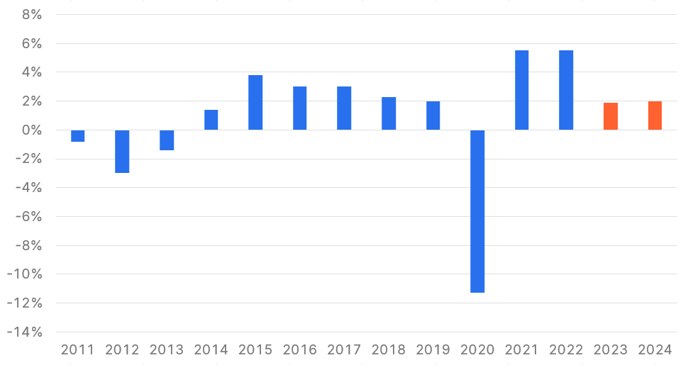 Reales BIP-Wachstum im Vergleich zum Vorjahr