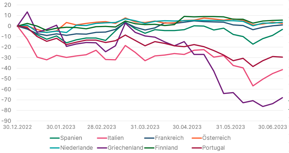 Quelle: Eurostat, Daten per 13.07.2023; Hinweis: Die Entwicklung in der Vergangenheit ist kein zuverlässiger Indikator für künftige Wertentwicklungen.