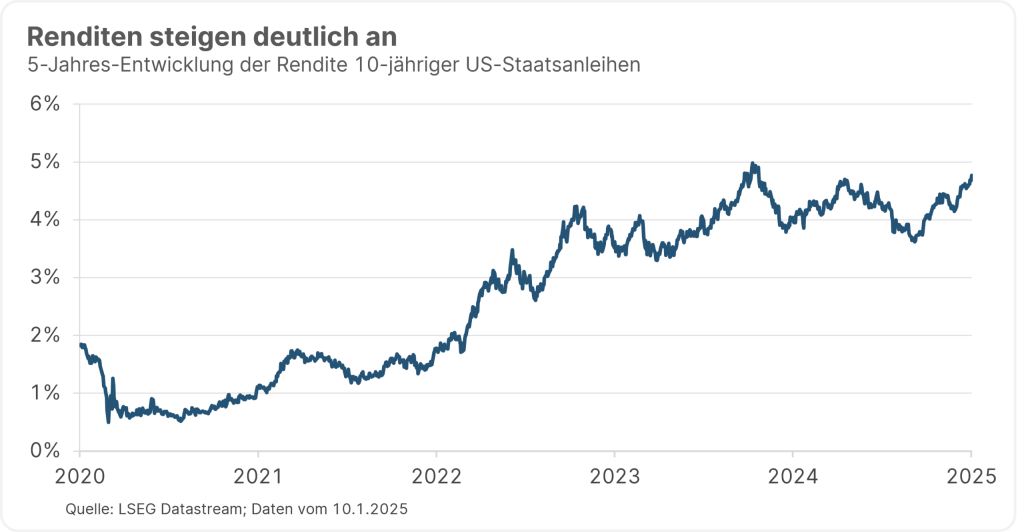 Dieses positive Umfeld für risikobehaftete Wertpapierklassen wie Aktien wird jedoch von einigen Unsicherheitsfaktoren getrübt, vor allem: Die Ausgestaltung der Politik der neuen US-Administration und die Renditeanstiege von Staatsanleihen.