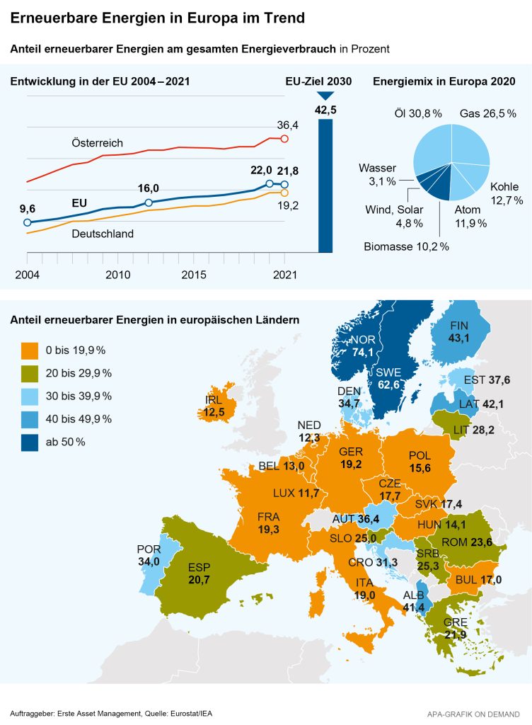 EU-Ziel sieht Anteil erneuerbarer Energien von 42,5 Prozent bis 2030 vor