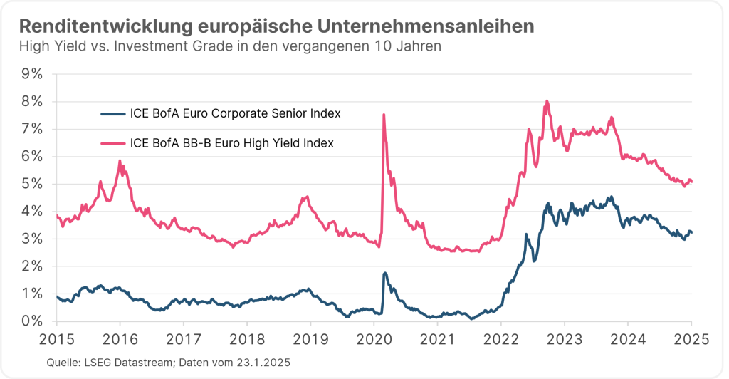 Mit der Zinswende sind auch die Renditen von Unternehmensanleihen wieder deutlich angestiegen.