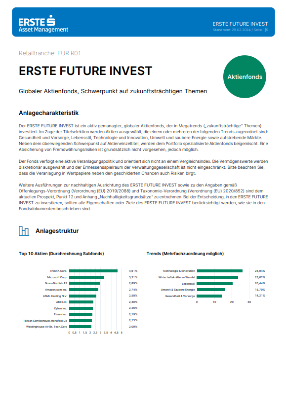 Grafik 1: Factsheet zum ERSTE FUTURE INVEST per 21.03.2024